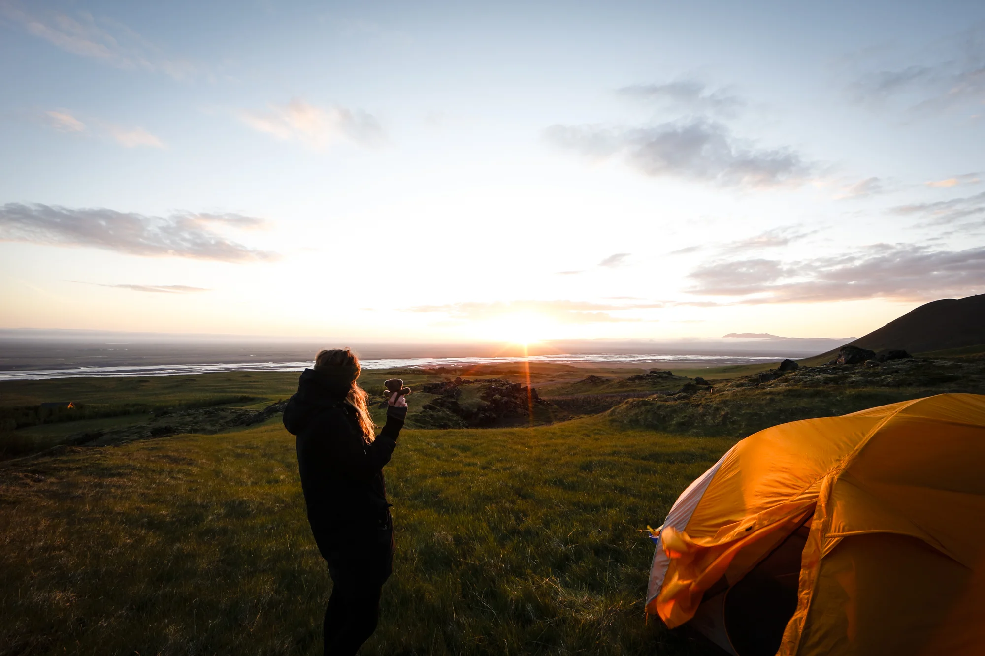 Our trusty North Face Triarch 3 , did a superb job, it's the perfect tent for two. It's extremely resilient against high winds and chilly temperatures. The nights we camped it dropped down to about 40°, but we weren't phased at all. Patty and I both have 0° North Face sleeping bags and they kept us extra cozy during these frigid nights. What is also amazing about Iceland is you can literally camp anywhere! We were able to camp out on the Snæfellsnes peninsula, the Black Sand beaches of Vik, on top of a Seljalandsfosswaterfall.
