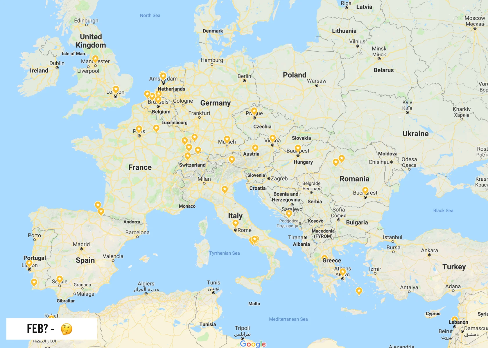 The final leg, depending on how we feel and budget arguably the easier of all the continents we've saved for last. We hope to hang in Greece for a bit and recharge and eat many olives. Then make our way into Romania and Slovenia to soak in the remarkable landscapes. Continue through Eastern Europe into Western Europe by train, bus or cheap flights. Finally end our trip in London at some point, and say hello to the Arsenal stadium. Cheers!