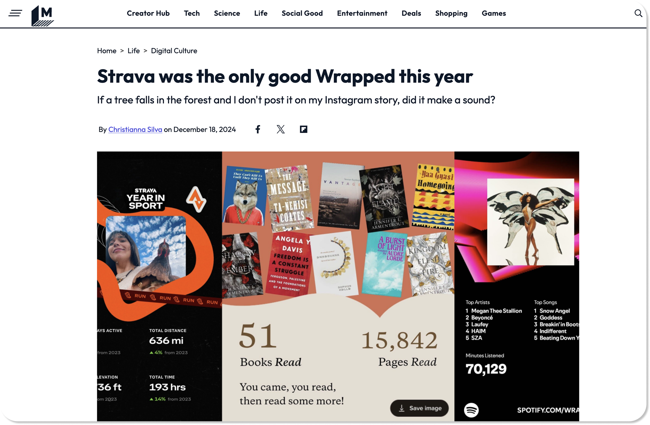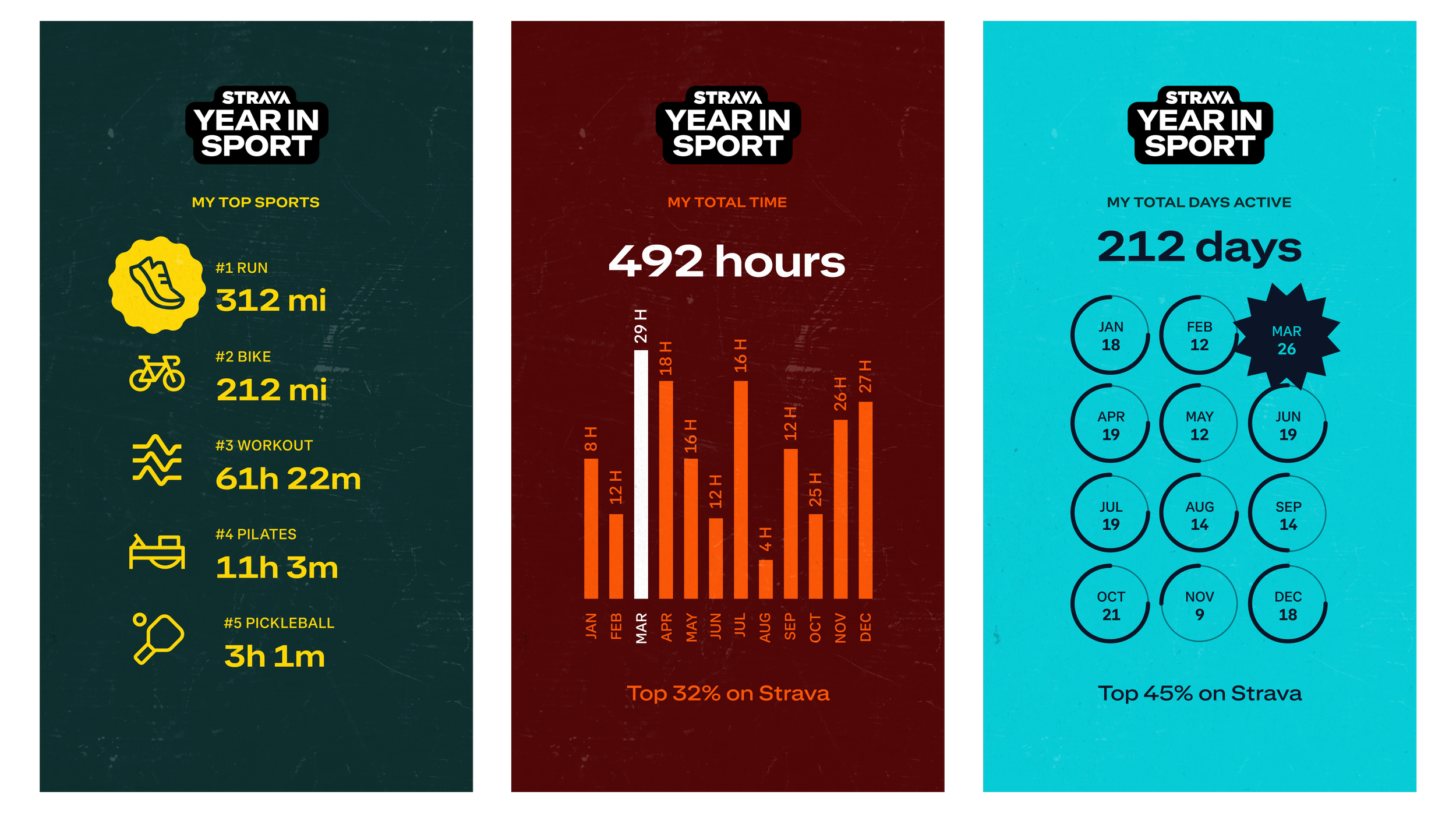Strava’s wrapped style campaign has become a beloved end of year tradition for our global community of 135M athletes, delivering that epic stats crunch everyone looks forward to. For Year in Sport 2024, we kept the fun front and center no paywall and with no barriers just pure celebration of the moments big and small: from flat tires to walks to the beer fridge, to the unforgettable story of a woman who even tracked her birth on Strava.