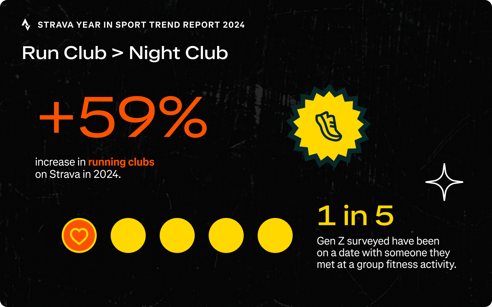 The final layer was the “Trend Report”—an in-house initiative spanning research, data analysis, and communications strategy to position Strava as the category leader in fitness culture. In 2024, the report uncovered a global shift toward more balanced fitness routines, with run clubs emerging as the new social hubs replacing nightclubs. Drawing from billions of activities logged by 135M+ athletes across 190+ countries, along with insights from a global survey of 5,000 active people, the report spotlighted a movement toward balance over burnout, stronger social connections through exercise, and the year’s most popular workout gear.